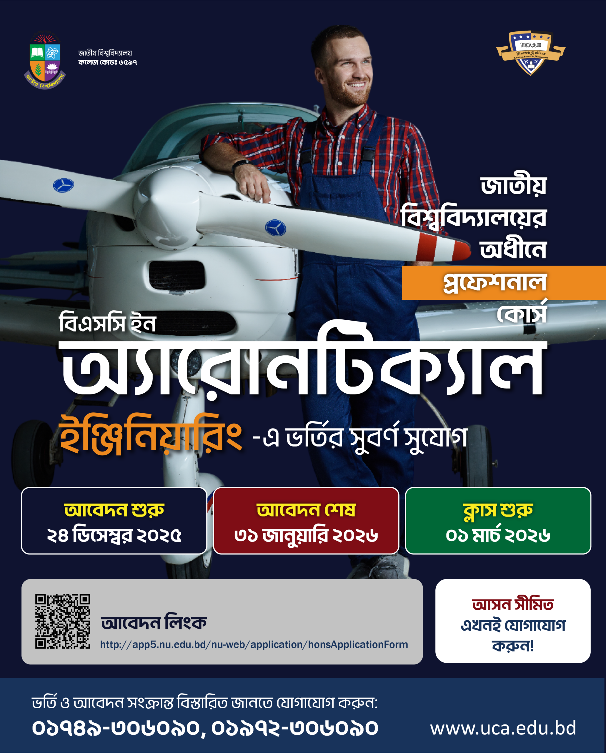 B.Sc in Aeronautical & Aviation Science & Engineering under National University (2025-26 session) Admission Circular