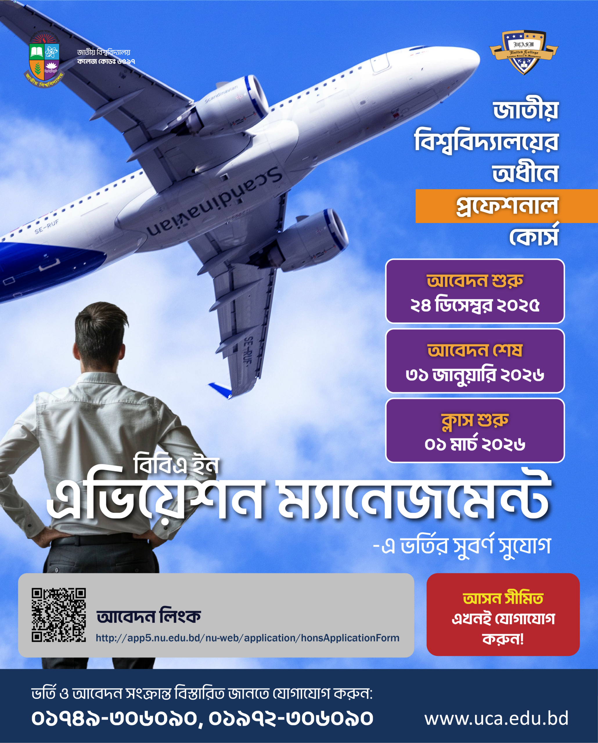 BBA in Aviation Management under National University (2025-26 session) Admission Circular
